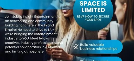 Subtle Insight Entertainment is hosting The IE Entertainment Networking Event on May 29, 2026, in Ontario, CA.